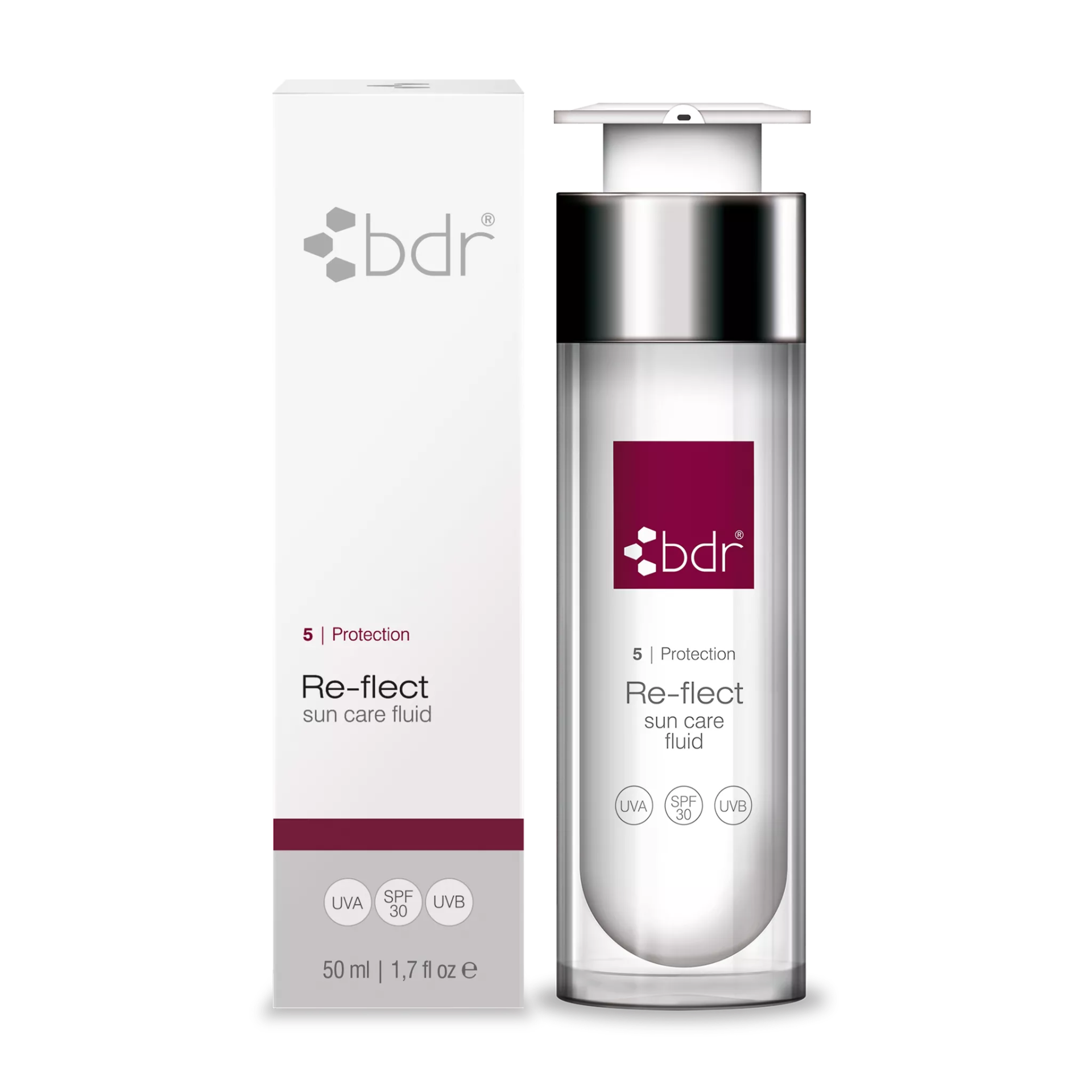Lehký fluid s SPF 30 pro ochranu pleti minerálními filtry - nemastný a vhodný pro všechny typy pleti. Biomimetický lipopeptid v opalovacím krému má protizánětlivé, antibakteriální a uklidňující účinky na pleť